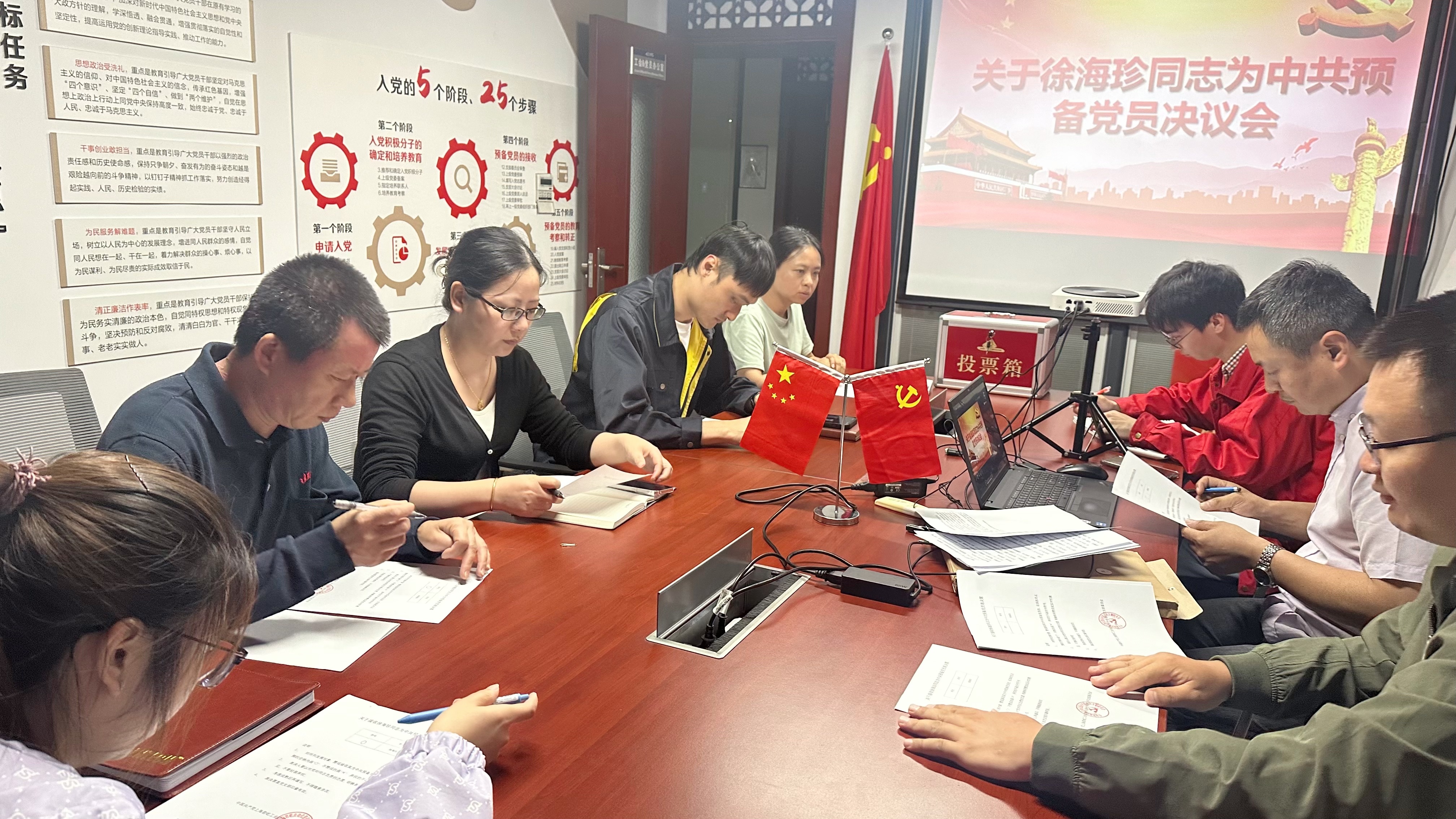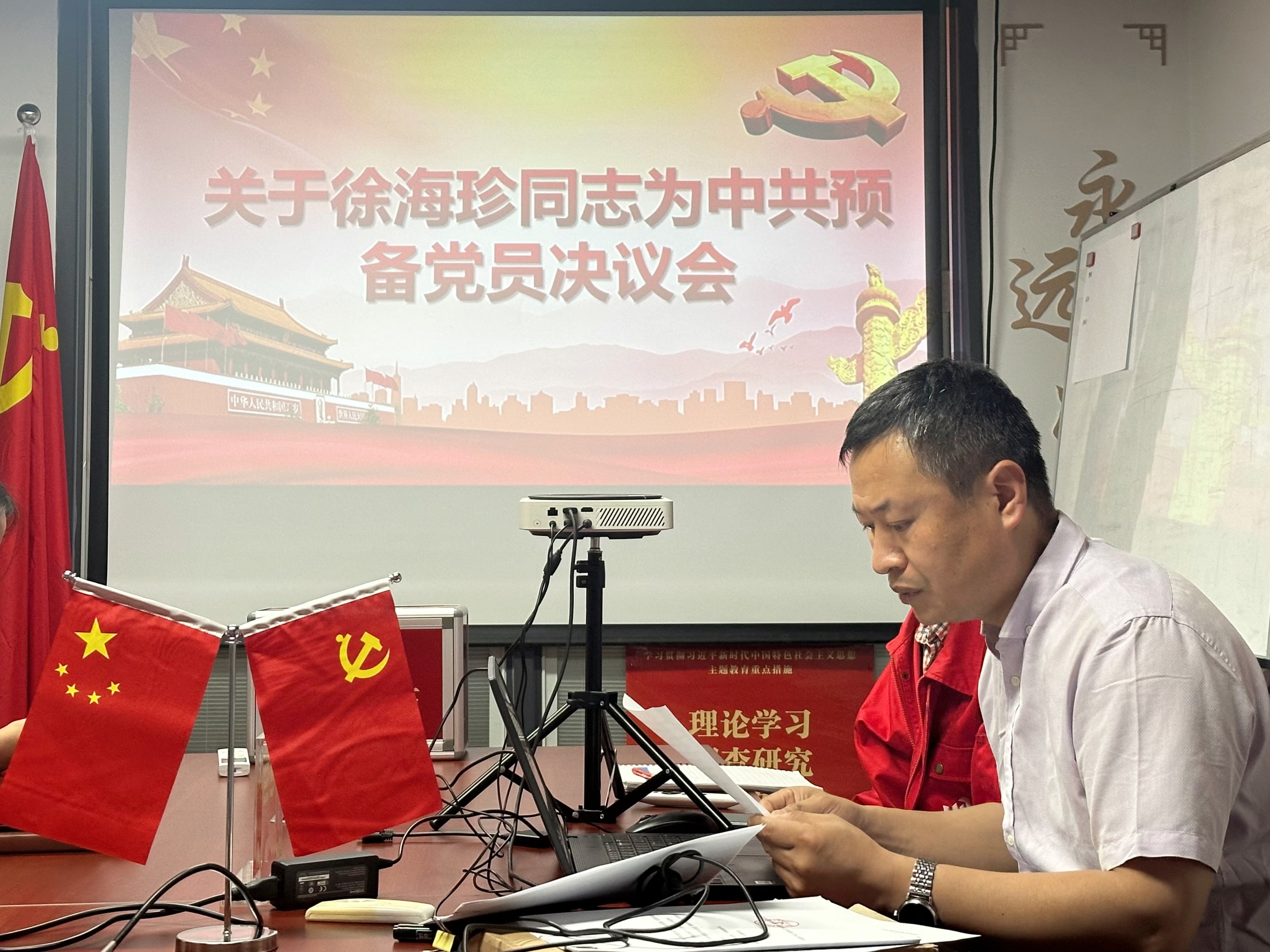 Anschließend berichtete der Sekretär der Parteizelle, Wang Fengkai, auf der Versammlung über die politische Überprüfung und öffentliche Bekanntmachung von Genossin Xu Haizhen sowie deren direkten Angehörigen und engen sozialen Beziehungen. Während der Überprüfung stellte sich heraus, dass Genossin Xu Haizhen sowie ihre direkten Angehörigen und engen sozialen Kontakte die Führung der Partei unterstützen, sich selbstbewusst an Parteidisziplin und staatliches Recht halten, eine klare politische Vergangenheit aufweisen und während der öffentlichen Bekanntmachung keine negativen Rückmeldungen erhalten haben. Anschließend bewerteten die beiden Parteimitglieder Jia Guolin und weitere zwei Genossen die umfassenden Leistungen von Xu Haizhen in den Bereichen politisches Denken, Arbeit, Studium sowie Verhalten und Disziplin während ihrer Ausbildungs- und Prüfungsphase und gaben ihre Meinung ab, ob sie in die Partei aufgenommen werden kann oder nicht.